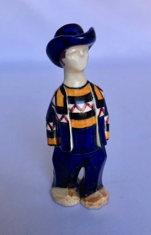 Faïence polychrome. Vers 1950. Restauration au cou du sujet.