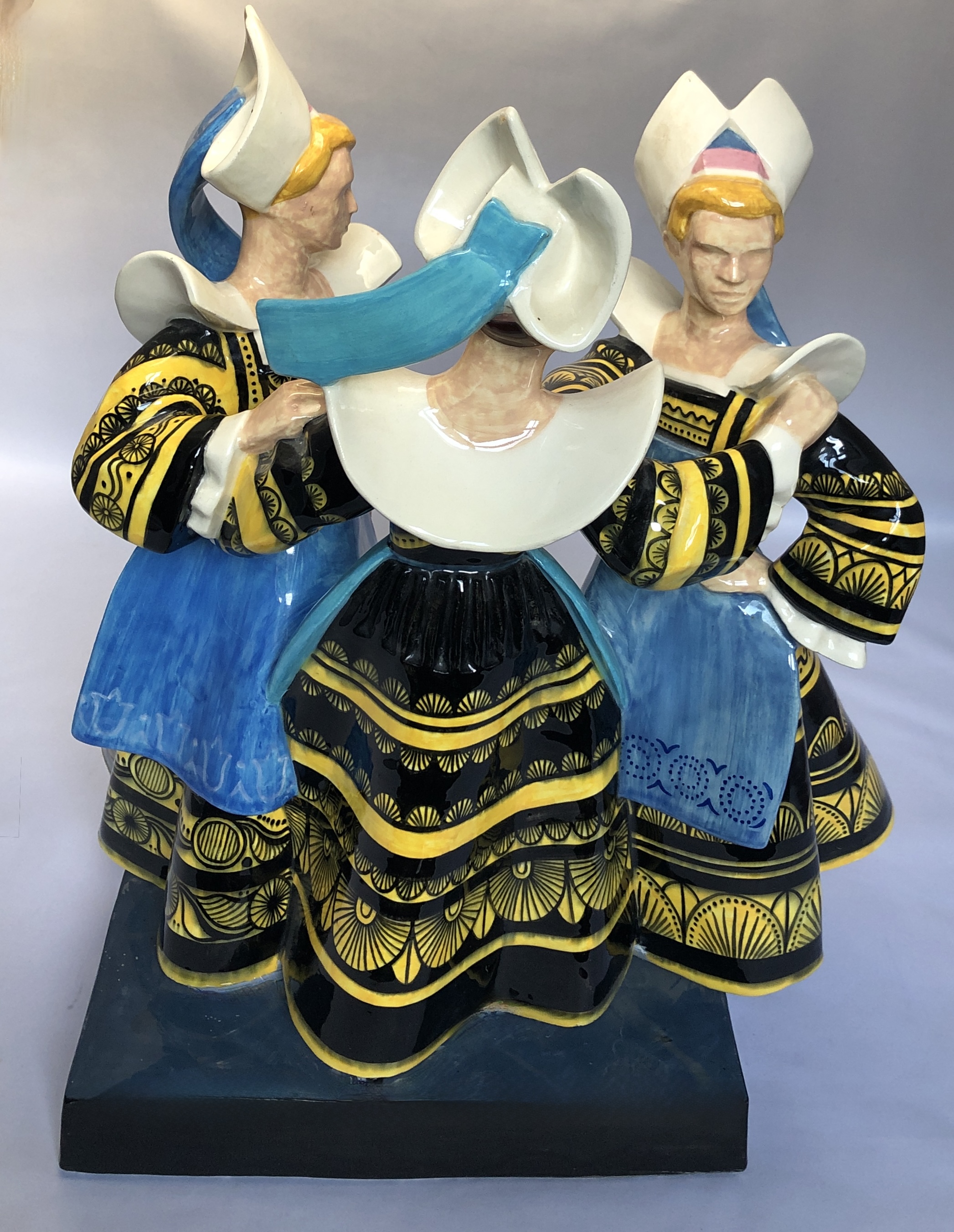 Faïence polychrome, vers 1955. Restauration d’un léger défaut d’émaillage sous une robe.