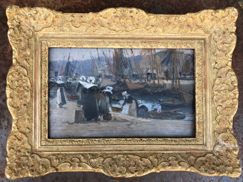 Retour à la liste Animation sur les quais de Concarneau Peintre Fernand Le Gout-Gérard Précisions Huile sur panneau. Signée bas gauche et datée 1899. VENDU. Cet objet m'intéresse