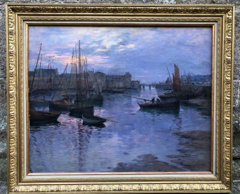 Fernand Le Gout Gérard a beaucoup peint de scènes portuaires au coucher du soleil, mais rarement dans une telle intensité de bleu.