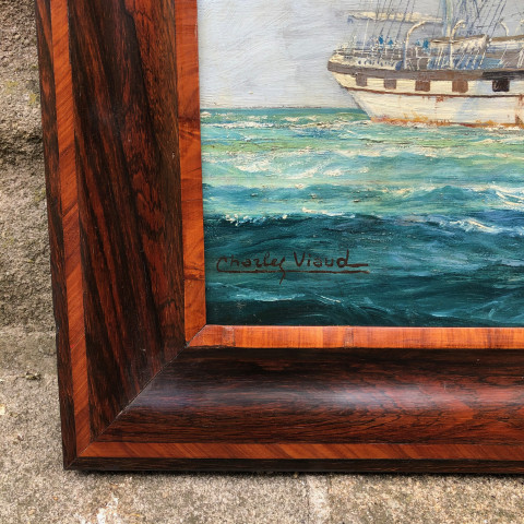 Huile sur panneau, signée bas gauche. Dimension de l'œuvre avec cadre : 67 x 92,5 cm.