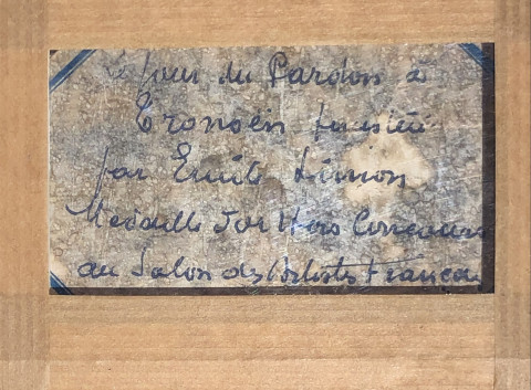 Au dos du panneau, une étiquette stipule que cette toile a obtenu une médaille d'or hors concours au Salon des Artistes français.