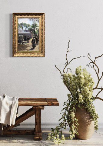 Une signature inconnue ou illisible ne diminue en rien la valeur esthétique ou émotionnelle d’une œuvre. Cette peinture capture un instant de vie bretonne authentique, figé dans un silence rural où l’on entend presque les sabots des bêtes. L’artiste n’a peut-être pas laissé un nom clair, mais il a laissé un regard : celui d’un témoin sensible d’un monde révolu.