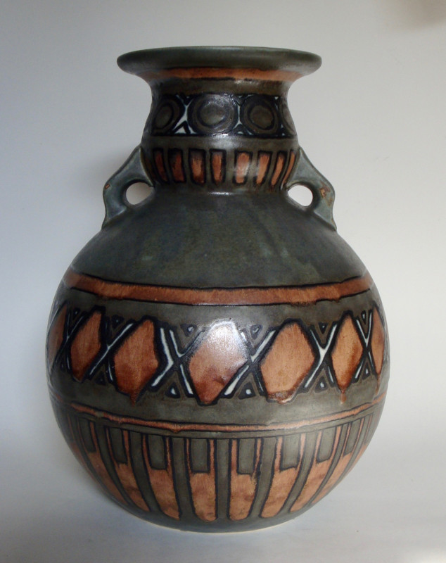 Back to the list Vase à décor géométrique Creator ODETTA Manufacture HB Quimper Details Grès. Vers 1925. This object interests me